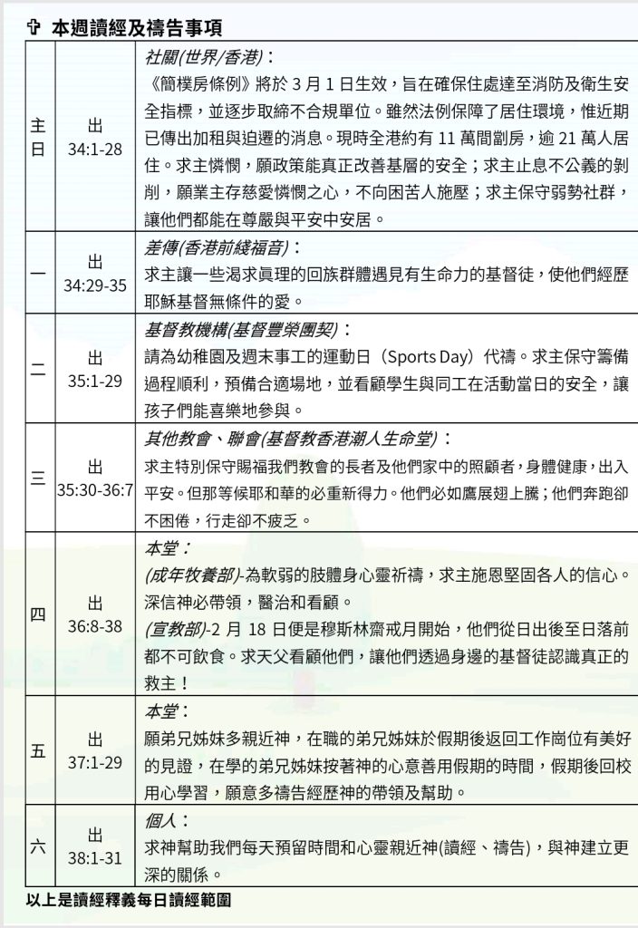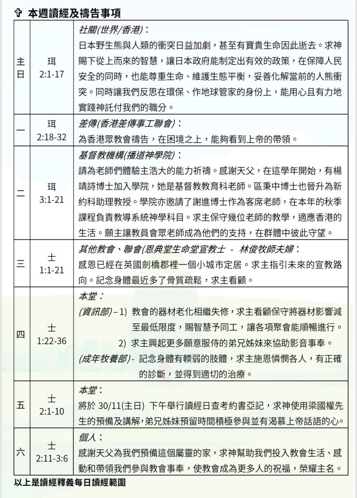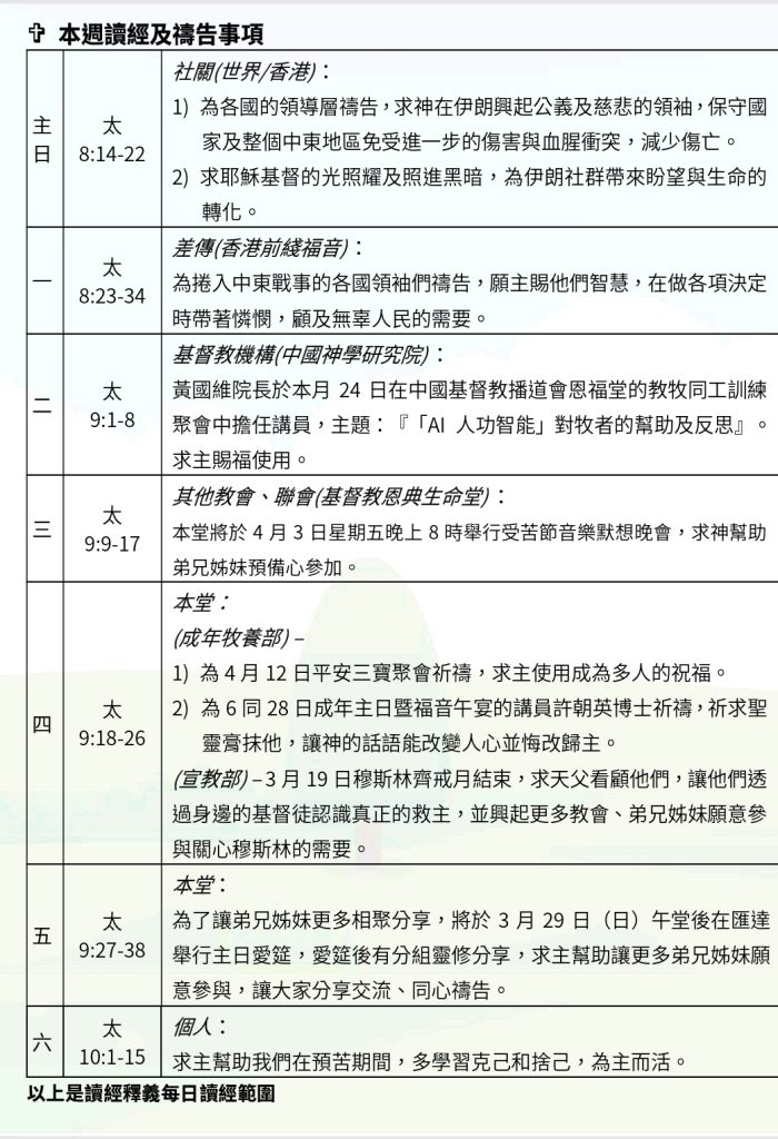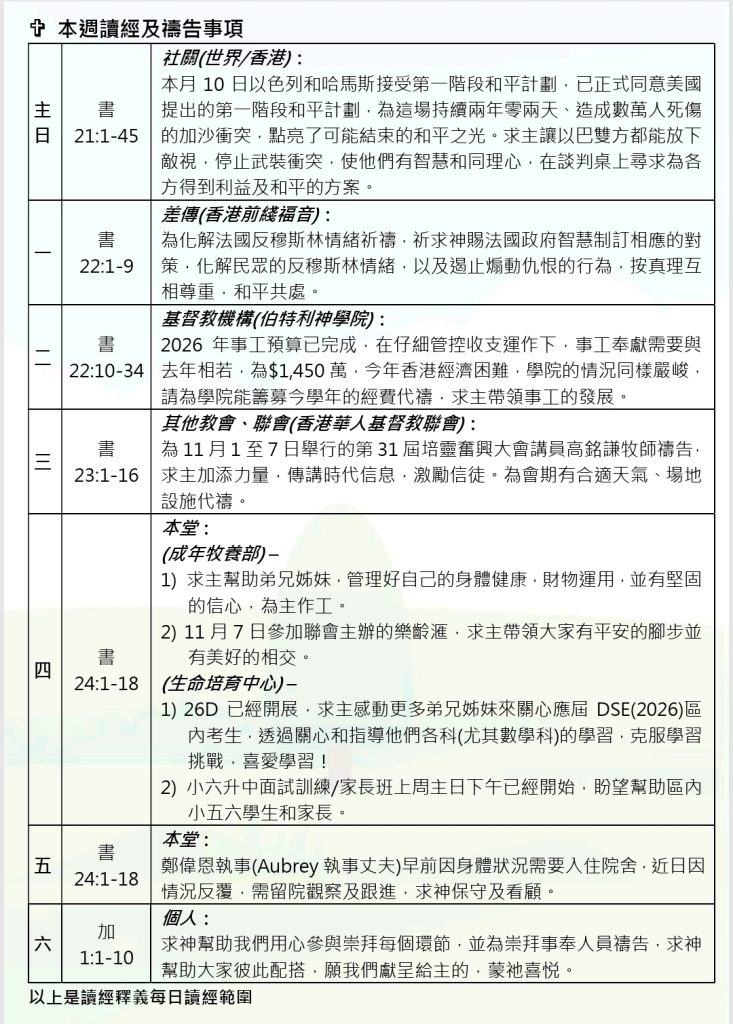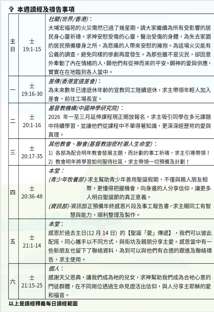 本週讀經及禱告事項